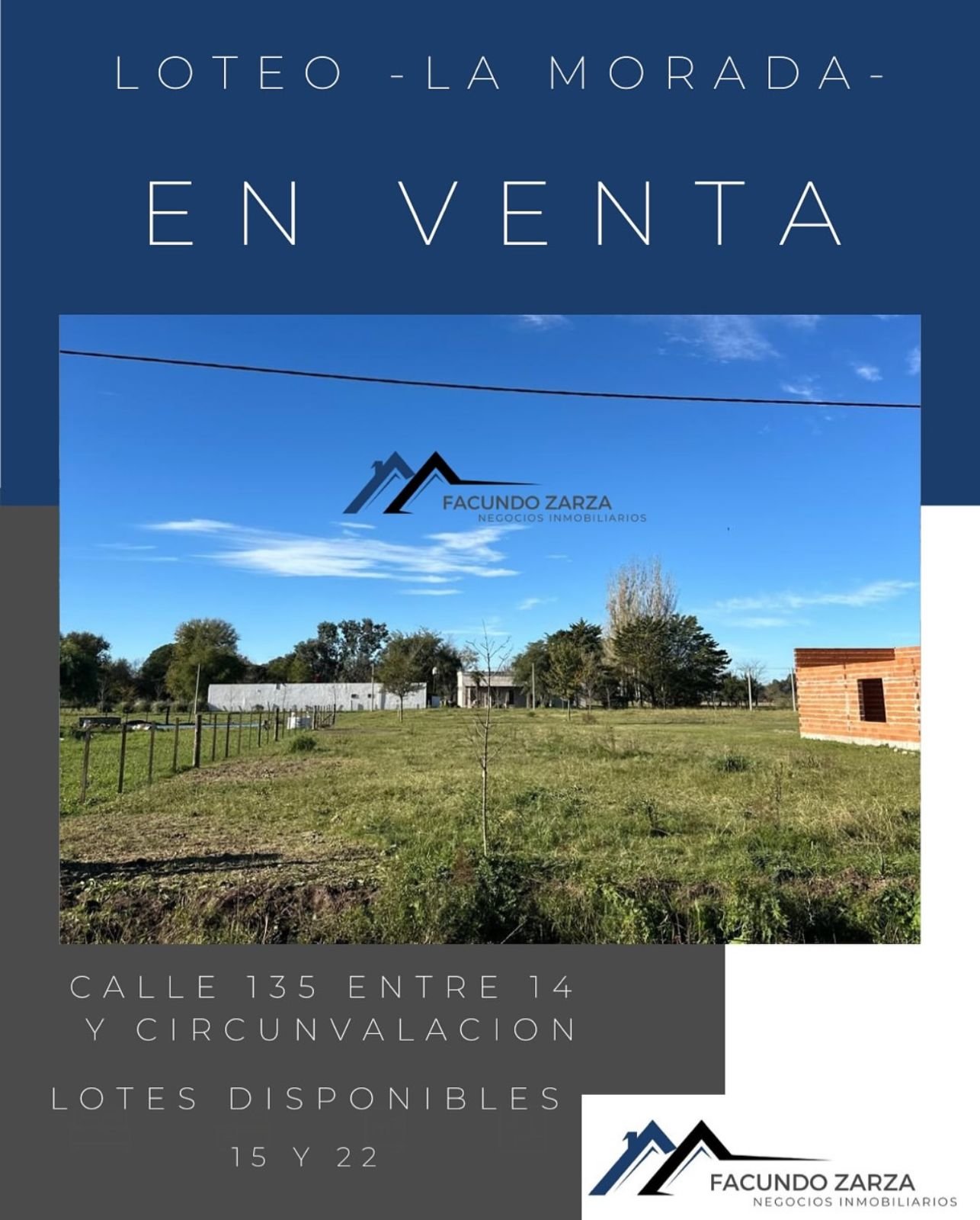 Loteo LA MORADA – Lote 15 dividido en dos – Gran oportunidad